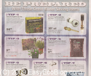 OSH had a nice newspaper ad outlining 7 tips for saving water. They cover items from outdoor plant watering to toilets to collecting shower water. Hope this gets more people to spend some money to save a lot more in wasted water costs, while helping them go green.