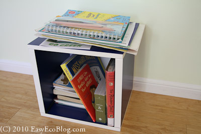 Way Basics makes a eco friendly furniture and storage products. We were sent their cube and it to be an easy to assemble building block product made from sustainable zBoard – recycled paper and itself fully recyclable. You pull off the tape and carefully tape boards together. It is pretty sturdy and costs $20.